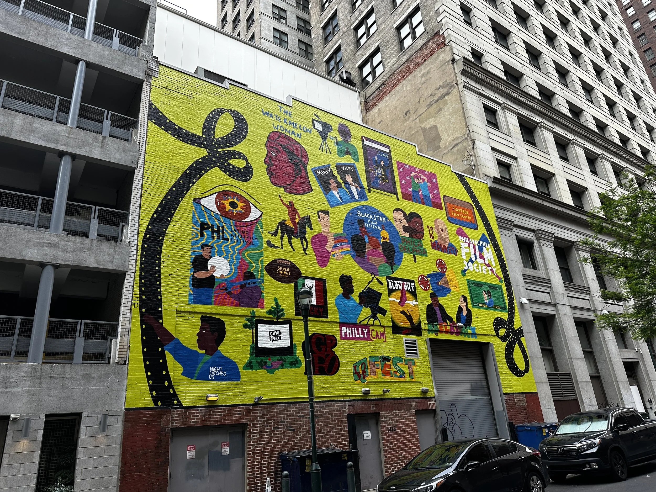 Starting in 2023 Mural Arts, BlackStar Film Festival, the Philadelphia Film Society and myself developed an exciting mural project celebrating the legacy of Philadelphia Film. The mural includes many films and film related organizations that have impacted filmmaking, film presentation and film- related training in Philadelphia.